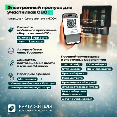 Новые сервисы для участников СВО региона «Электронный пропуск.Культура» и «Электронный пропуск.Спорт» внедрены в «Карте жителя Новосибирской области».